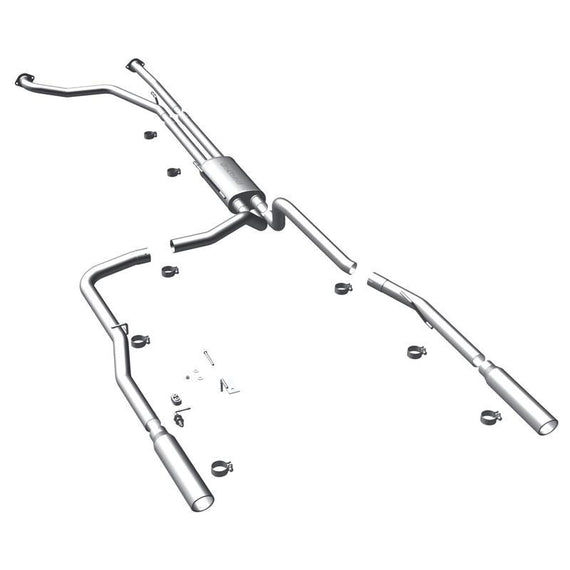 These MagnaFlow performance exhaust systems are as rugged and reliable as the vehicle that you drive. These exhaust kits feature OEM-style barbed hangers for easy installation, mandrel bends to prevent exhaust flow restrictions, and MagnaFlow's legendary straight-through, wide-open, stainless steel muffler to provide a smooth, deep tone outside of the vehicle. All MagnaFlow exhaust systems are factory-checked for proper fitment and dyno-tested to verify performance gains. These kits include all necessary installation hardware and some include a polished stainless steel exhaust tip.