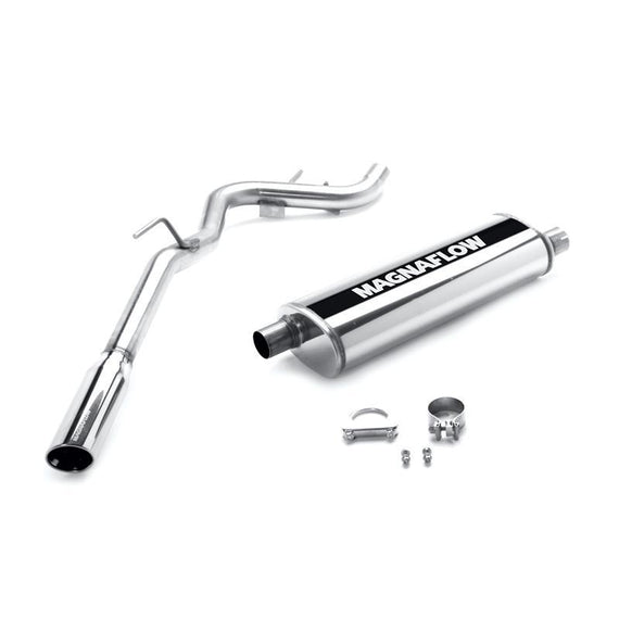 These MagnaFlow performance exhaust systems are as rugged and reliable as the vehicle that you drive. These exhaust kits feature OEM-style barbed hangers for easy installation, mandrel bends to prevent exhaust flow restrictions, and MagnaFlow's legendary straight-through, wide-open, stainless steel muffler to provide a smooth, deep tone outside of the vehicle. All MagnaFlow exhaust systems are factory-checked for proper fitment and dyno-tested to verify performance gains. These kits include all necessary installation hardware and some include a polished stainless steel exhaust tip.