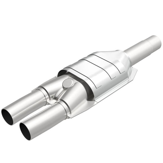MagnaFlow specializes in superior catalytic converter and exhaust technology and has spent the past 30+ years earning its reputation as a global market leader. American engineered and manufactured, MagnaFlow Catalytic Converters combine efficient industrial design to produce a product that exceeds, rather than meets, the highest standards of product performance and efficiency in the industry. MagnaFlow uses both Ceramic and Metallic substrates with different combinations of cell density and wall thickness to meet vehicle specific requirements. MagnaFlow Universal Catalytic Converters form the basic building blocks for a comprehensive line of direct-fit applications. The main benefit of the universal catalytic converter is that one unit may cover a wide variety of vehicle makes and models. Installing universal converters often requires the use of welding, cutting and tube bending equipment that is readily available to most professional installers. All Federal catalytic converters meet EPA requirements. Federal Catalytic Converters are not legal for sale, installation or use on vehicles registered in the state of California. •Stainless steel construction •Federal Emissions compliant design •Formulated for Gas and Diesel Applications