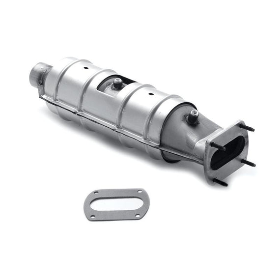 MagnaFlow specializes in superior catalytic converter and exhaust technology and has spent the past 30+ years earning its reputation as a global market leader. American engineered and manufactured, MagnaFlow Catalytic Converters combine efficient industrial design to produce a product that exceeds, rather than meets, the highest standards of product performance and efficiency in the industry. MagnaFlow uses both Ceramic and Metallic substrates with different combinations of cell density and wall thickness to meet vehicle specific requirements. MagnaFlow Universal Catalytic Converters form the basic building blocks for a comprehensive line of direct-fit applications. The main benefit of the universal catalytic converter is that one unit may cover a wide variety of vehicle makes and models. Installing universal converters often requires the use of welding, cutting and tube bending equipment that is readily available to most professional installers. All Federal catalytic converters meet EPA requirements. Federal Catalytic Converters are not legal for sale, installation or use on vehicles registered in the state of California. •Stainless steel construction •Federal Emissions compliant design •Formulated for Gas and Diesel Applications