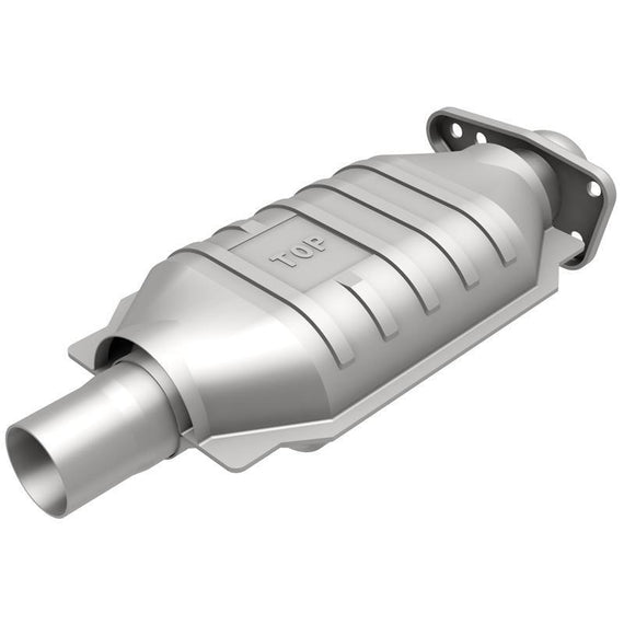 MagnaFlow specializes in superior catalytic converter and exhaust technology and has spent the past 30+ years earning its reputation as a global market leader. American engineered and manufactured, MagnaFlow Catalytic Converters combine efficient industrial design to produce a product that exceeds, rather than meets, the highest standards of product performance and efficiency in the industry. MagnaFlow uses both Ceramic and Metallic substrates with different combinations of cell density and wall thickness to meet vehicle specific requirements. MagnaFlow Universal Catalytic Converters form the basic building blocks for a comprehensive line of direct-fit applications. The main benefit of the universal catalytic converter is that one unit may cover a wide variety of vehicle makes and models. Installing universal converters often requires the use of welding, cutting and tube bending equipment that is readily available to most professional installers. All Federal catalytic converters meet EPA requirements. Federal Catalytic Converters are not legal for sale, installation or use on vehicles registered in the state of California. •Stainless steel construction •Federal Emissions compliant design •Formulated for Gas and Diesel Applications