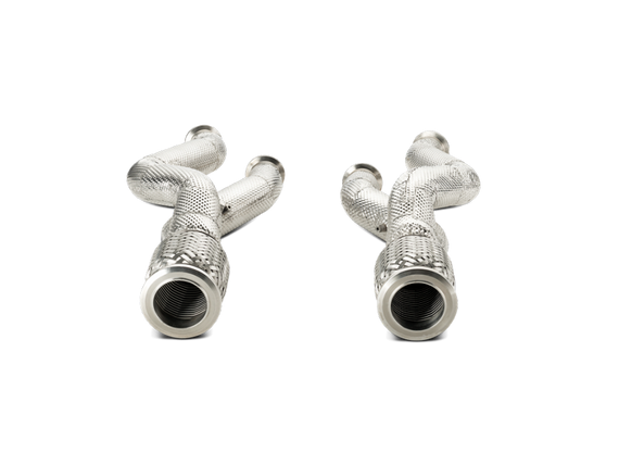 This set of high-quality, lightweight link pipes is offered as an option for the Lamborghini Aventador to further enhance the performance of this stunning car. Manufactured from Inconel, the link pipes are designed to utilize the Akrapovi? Slip-On system. When installed with the Slip-On system, these pipes will increase power, reduce the weight by over 50% from the stock setup, and add even more V12–Grand Prix Racing sound enjoyment. Designed with insulating material to prevent heat transfer from the exhaust area, the addition of catless link pipes will require remapping the ECU.