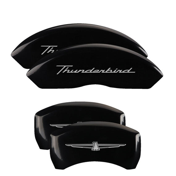 MGP 4 Caliper Covers Engrvd Front No bolts/Tbird Engrvd Rear/Tbird Emblem Blk fnsh slvr ch