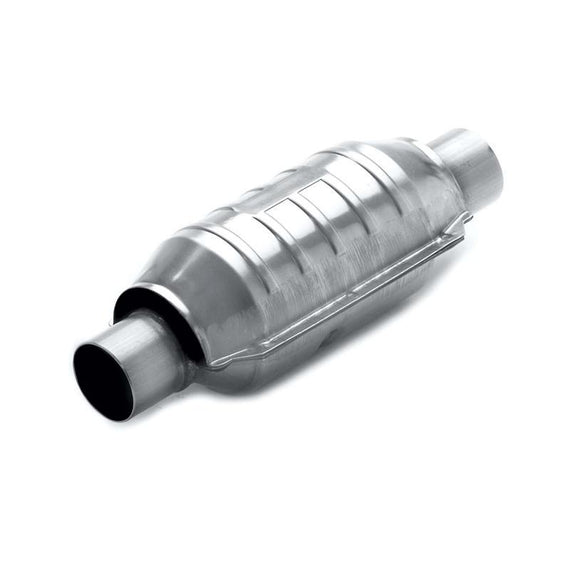 MagnaFlow specializes in superior catalytic converter and exhaust technology and has spent the past 30+ years earning its reputation as a global market leader. American engineered and manufactured, MagnaFlow Catalytic Converters combine efficient industrial design to produce a product that exceeds, rather than meets, the highest standards of product performance and efficiency in the industry. MagnaFlow uses both Ceramic and Metallic substrates with different combinations of cell density and wall thickness to meet vehicle specific requirements. MagnaFlow Universal Catalytic Converters form the basic building blocks for a comprehensive line of direct-fit applications. The main benefit of the universal catalytic converter is that one unit may cover a wide variety of vehicle makes and models. Installing universal converters often requires the use of welding, cutting and tube bending equipment that is readily available to most professional installers. All Federal catalytic converters meet EPA requirements. Federal Catalytic Converters are not legal for sale, installation or use on vehicles registered in the state of California. •Stainless steel construction •Federal Emissions compliant design •Formulated for Gas and Diesel Applications