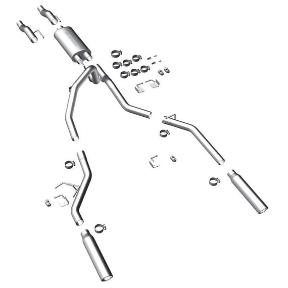 These MagnaFlow performance exhaust systems are as rugged and reliable as the vehicle that you drive. These exhaust kits feature OEM-style barbed hangers for easy installation, mandrel bends to prevent exhaust flow restrictions, and MagnaFlow's legendary straight-through, wide-open, stainless steel muffler to provide a smooth, deep tone outside of the vehicle. All MagnaFlow exhaust systems are factory-checked for proper fitment and dyno-tested to verify performance gains. These kits include all necessary installation hardware and some include a polished stainless steel exhaust tip.