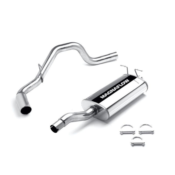 These MagnaFlow performance exhaust systems are as rugged and reliable as the vehicle that you drive. These exhaust kits feature OEM-style barbed hangers for easy installation, mandrel bends to prevent exhaust flow restrictions, and MagnaFlow's legendary straight-through, wide-open, stainless steel muffler to provide a smooth, deep tone outside of the vehicle. All MagnaFlow exhaust systems are factory-checked for proper fitment and dyno-tested to verify performance gains. These kits include all necessary installation hardware and some include a polished stainless steel exhaust tip.