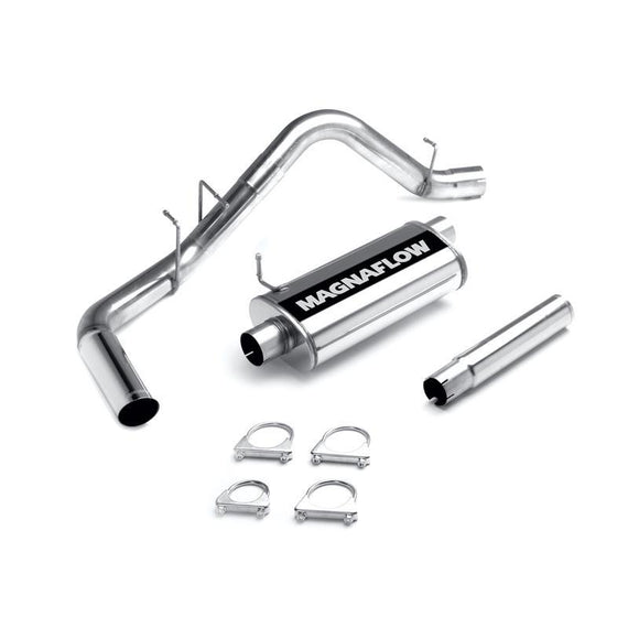 These MagnaFlow performance exhaust systems are as rugged and reliable as the vehicle that you drive. These exhaust kits feature OEM-style barbed hangers for easy installation, mandrel bends to prevent exhaust flow restrictions, and MagnaFlow's legendary straight-through, wide-open, stainless steel muffler to provide a smooth, deep tone outside of the vehicle. All MagnaFlow exhaust systems are factory-checked for proper fitment and dyno-tested to verify performance gains. These kits include all necessary installation hardware and some include a polished stainless steel exhaust tip.