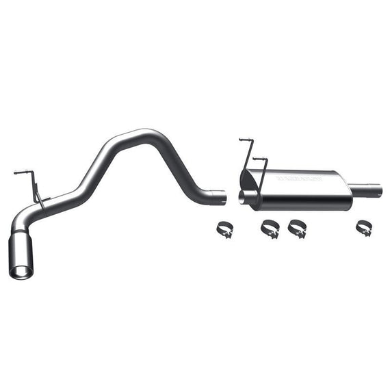 These MagnaFlow performance exhaust systems are as rugged and reliable as the vehicle that you drive. These exhaust kits feature OEM-style barbed hangers for easy installation, mandrel bends to prevent exhaust flow restrictions, and MagnaFlow's legendary straight-through, wide-open, stainless steel muffler to provide a smooth, deep tone outside of the vehicle. All MagnaFlow exhaust systems are factory-checked for proper fitment and dyno-tested to verify performance gains. These kits include all necessary installation hardware and some include a polished stainless steel exhaust tip.