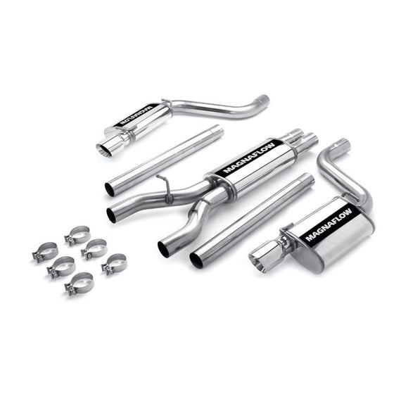 These MagnaFlow performance exhaust systems are as rugged and reliable as the vehicle that you drive. These exhaust kits feature OEM-style barbed hangers for easy installation, mandrel bends to prevent exhaust flow restrictions, and MagnaFlow's legendary straight-through, wide-open, stainless steel muffler to provide a smooth, deep tone outside of the vehicle. All MagnaFlow exhaust systems are factory-checked for proper fitment and dyno-tested to verify performance gains. These kits include all necessary installation hardware and some include a polished stainless steel exhaust tip.