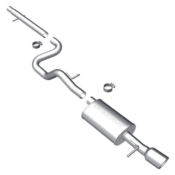 These MagnaFlow performance exhaust systems are as rugged and reliable as the vehicle that you drive. These exhaust kits feature OEM-style barbed hangers for easy installation, mandrel bends to prevent exhaust flow restrictions, and MagnaFlow's legendary straight-through, wide-open, stainless steel muffler to provide a smooth, deep tone outside of the vehicle. All MagnaFlow exhaust systems are factory-checked for proper fitment and dyno-tested to verify performance gains. These kits include all necessary installation hardware and some include a polished stainless steel exhaust tip.