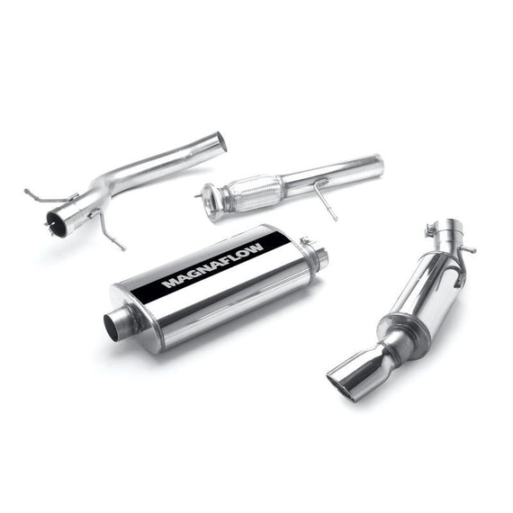 These MagnaFlow performance exhaust systems are as rugged and reliable as the vehicle that you drive. These exhaust kits feature OEM-style barbed hangers for easy installation, mandrel bends to prevent exhaust flow restrictions, and MagnaFlow's legendary straight-through, wide-open, stainless steel muffler to provide a smooth, deep tone outside of the vehicle. All MagnaFlow exhaust systems are factory-checked for proper fitment and dyno-tested to verify performance gains. These kits include all necessary installation hardware and some include a polished stainless steel exhaust tip.