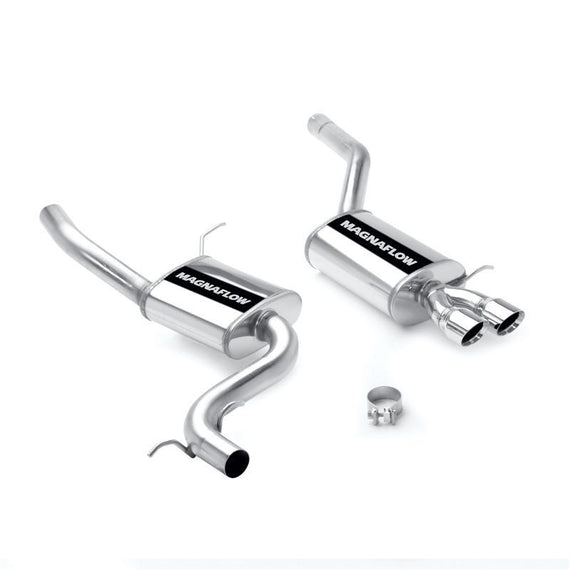 These MagnaFlow performance exhaust systems are as rugged and reliable as the vehicle that you drive. These exhaust kits feature OEM-style barbed hangers for easy installation, mandrel bends to prevent exhaust flow restrictions, and MagnaFlow's legendary straight-through, wide-open, stainless steel muffler to provide a smooth, deep tone outside of the vehicle. All MagnaFlow exhaust systems are factory-checked for proper fitment and dyno-tested to verify performance gains. These kits include all necessary installation hardware and some include a polished stainless steel exhaust tip.