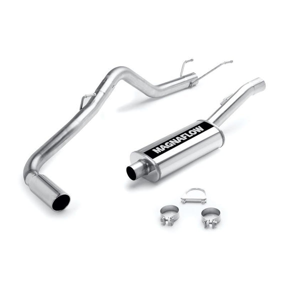 These MagnaFlow performance exhaust systems are as rugged and reliable as the vehicle that you drive. These exhaust kits feature OEM-style barbed hangers for easy installation, mandrel bends to prevent exhaust flow restrictions, and MagnaFlow's legendary straight-through, wide-open, stainless steel muffler to provide a smooth, deep tone outside of the vehicle. All MagnaFlow exhaust systems are factory-checked for proper fitment and dyno-tested to verify performance gains. These kits include all necessary installation hardware and some include a polished stainless steel exhaust tip.