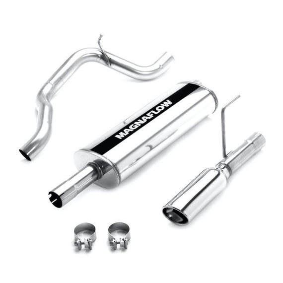These MagnaFlow performance exhaust systems are as rugged and reliable as the vehicle that you drive. These exhaust kits feature OEM-style barbed hangers for easy installation, mandrel bends to prevent exhaust flow restrictions, and MagnaFlow's legendary straight-through, wide-open, stainless steel muffler to provide a smooth, deep tone outside of the vehicle. All MagnaFlow exhaust systems are factory-checked for proper fitment and dyno-tested to verify performance gains. These kits include all necessary installation hardware and some include a polished stainless steel exhaust tip.