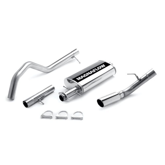 These MagnaFlow performance exhaust systems are as rugged and reliable as the vehicle that you drive. These exhaust kits feature OEM-style barbed hangers for easy installation, mandrel bends to prevent exhaust flow restrictions, and MagnaFlow's legendary straight-through, wide-open, stainless steel muffler to provide a smooth, deep tone outside of the vehicle. All MagnaFlow exhaust systems are factory-checked for proper fitment and dyno-tested to verify performance gains. These kits include all necessary installation hardware and some include a polished stainless steel exhaust tip.