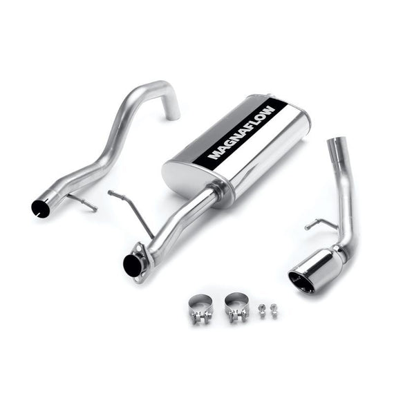 These MagnaFlow performance exhaust systems are as rugged and reliable as the vehicle that you drive. These exhaust kits feature OEM-style barbed hangers for easy installation, mandrel bends to prevent exhaust flow restrictions, and MagnaFlow's legendary straight-through, wide-open, stainless steel muffler to provide a smooth, deep tone outside of the vehicle. All MagnaFlow exhaust systems are factory-checked for proper fitment and dyno-tested to verify performance gains. These kits include all necessary installation hardware and some include a polished stainless steel exhaust tip.