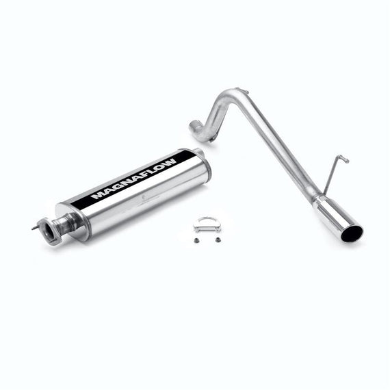 These MagnaFlow performance exhaust systems are as rugged and reliable as the vehicle that you drive. These exhaust kits feature OEM-style barbed hangers for easy installation, mandrel bends to prevent exhaust flow restrictions, and MagnaFlow's legendary straight-through, wide-open, stainless steel muffler to provide a smooth, deep tone outside of the vehicle. All MagnaFlow exhaust systems are factory-checked for proper fitment and dyno-tested to verify performance gains. These kits include all necessary installation hardware and some include a polished stainless steel exhaust tip.