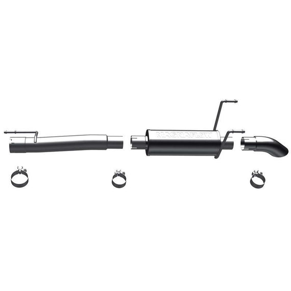 MagnaFlow Off-Road Pro series systems turn down before the axle design. The turndown provides an aggressive exhaust note and allows for usage on vehicles with highly modified suspension systems. The MagnaFlow Off-Road Pro series turndown systems provide the versatility to accommodate nearly every configuration, including lifted, lowered, air bagged, and long travel. Additionally, they are engineered for maximum power and minimal weight. These systems also eliminate the need for custom fabrication with true bolt-on fitment. Increase performance and turns heads with MagnaFlow Off-Road Pro series turndown systems.