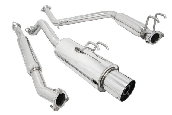 Megan Racing NA TYPE Cat-Back Systems complete your exhaust from the catalytic converter out. Made of 100% T-304 Stainless Steel for long-lasting durability, these systems feature smooth bends and a straight-through design for superior performance; while the built-in resonator and dual-chamber silencer offer a mellow yet aggressive tone for the street. To finish off your ride just right, the polished finish and clean welds offer the perfect show-quality you desire.