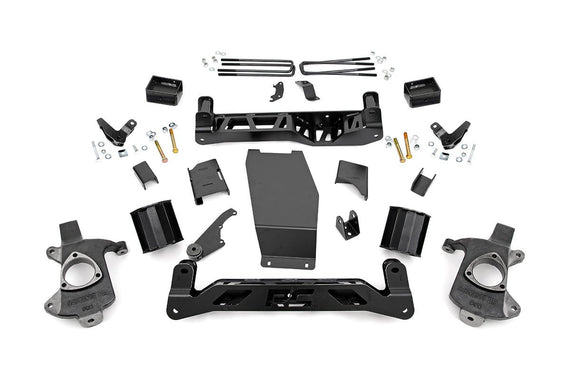 Can run 33-inch tires on factory 20-inch wheels; Provides highly sought level stance; High clearance crossmember design gives unmatched ground clearance; 100% precision laser cut materials using the latest computer aided design process; Fabricated blocks are stronger and offer a longer lifespan than cast blocks