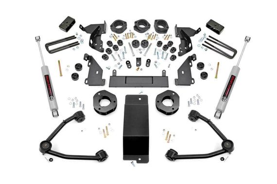 Increased ground clearance; Differential drops maintain proper axle angle; Differential drops are made from CNC machined 6061 billet aluminum; Ball joints are made by MOOG, the most trusted name in ball joint design, and pre-installed to ease installation; Fabricated lift blocks are stronger and offer a longer lifespan than cast blocks; Features application valved N3 series shock absorbers; Body lift provides 1.25-inches of lift opposed to the standard 1-inch