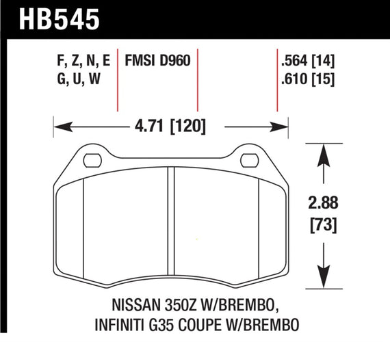 Hawk Performance HB545E.564 Blue 9012 Disc Brake Pad Fits 03-09 350Z G35 Sentra HB545E.564