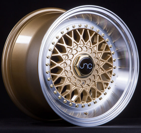 JNC 004S Gold Machined Lip Gold Rivets 18x8.5 5x100/5x114.3 +30 Wheel/Rim. Most JNC wheels have a centerbore of 73.1, you will need to get hub rings if you prefer to have it smaller. All wheels are rated for 3,800 pounds load capacity.