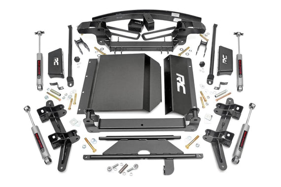 Get a huge boost for your '88 - '98 Chevy / GMC 1500, Tahoe, and Suburban with Rough Country's all-inclusive 6-inch Suspension Lift. With a set of beefy front and rear crossmembers and differential drop brackets, this kit can take what you dish out and keep on kicking. A set of drop-torsion bar brackets and a durable front skid plate both feature laser-cut RCX logos that peak out from under the frame, giving your vehicle an unmistakable look. This kit ships with a massive steering link and heim joint assist link. Rear lift blocks and add-a-leafs give plenty of clearance - enough to accommodate up to 35-inch tires. Our new and improved design allows your vehicle to retain it's stock track width, and installation is now even easier.