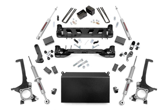 You'll never look at a Tundra the same way after installing Rough Country's 6-inch Toyota Tundra kit. This all-inclusive kit is a total transformation for your truck, with durable lifted knuckles, protective skid plate, and all the brackets and hardware needed to set your truck to a factory-like geometry while providing additional ground clearance. The beefy front crossmember features a high-clearance design to help traverse off-road obstacles with no hang-ups.Run larger wheels and tires while giving your truck a one-of-a-kind look and exceptional off-road performance. This kit affords your truck an aggressive appearance and a higher profile that is sure to demand attention. This kit includes Rough Country's Nitrogen-charged N3 Shocks for the ultimate balance in highway ride quality and off-road vibration dampening. Includes Rough Country's Lifetime Replacement Guarantee.