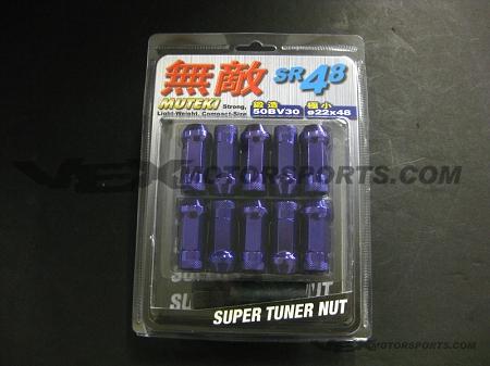 The latest lug nuts from Wheelmate of Japan, the Muteki SR48 Lug Nuts come in a set of 20 with key adapter. Made of durable chrome vanadium, each lug weighs in at a mere 2 oz! They're also open ended, making them easily adaptable for short or extended wheel stud usage.