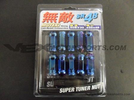 The latest lug nuts from Wheelmate of Japan, the Muteki SR48 Lug Nuts come in a set of 20 with key adapter. Made of durable chrome vanadium, each lug weighs in at a mere 2 oz! They're also open ended, making them easily adaptable for short or extended wheel stud usage.