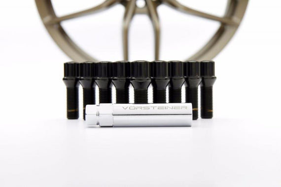 Vorsteiner Spline Wheel Bolt Sets are high-quality aftermarket wheel accessories engineered using OEM grade hardened steel and finished in a 3-stage triple black coating process. These spline wheel bolt sets include 20 spline wheel bolts with special propriety key. Purchase now these high-quality wheel accessories at a markdown price. .