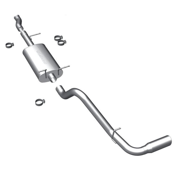 These MagnaFlow performance exhaust systems are as rugged and reliable as the vehicle that you drive. These exhaust kits feature OEM-style barbed hangers for easy installation, mandrel bends to prevent exhaust flow restrictions, and MagnaFlow's legendary straight-through, wide-open, stainless steel muffler to provide a smooth, deep tone outside of the vehicle. All MagnaFlow exhaust systems are factory-checked for proper fitment and dyno-tested to verify performance gains. These kits include all necessary installation hardware and some include a polished stainless steel exhaust tip.