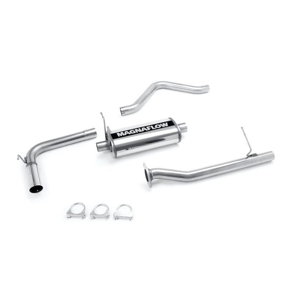 These MagnaFlow performance exhaust systems are as rugged and reliable as the vehicle that you drive. These exhaust kits feature OEM-style barbed hangers for easy installation, mandrel bends to prevent exhaust flow restrictions, and MagnaFlow's legendary straight-through, wide-open, stainless steel muffler to provide a smooth, deep tone outside of the vehicle. All MagnaFlow exhaust systems are factory-checked for proper fitment and dyno-tested to verify performance gains. These kits include all necessary installation hardware and some include a polished stainless steel exhaust tip.