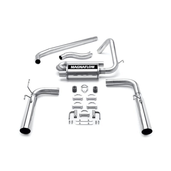These MagnaFlow performance exhaust systems are as rugged and reliable as the vehicle that you drive. These exhaust kits feature OEM-style barbed hangers for easy installation, mandrel bends to prevent exhaust flow restrictions, and MagnaFlow's legendary straight-through, wide-open, stainless steel muffler to provide a smooth, deep tone outside of the vehicle. All MagnaFlow exhaust systems are factory-checked for proper fitment and dyno-tested to verify performance gains. These kits include all necessary installation hardware and some include a polished stainless steel exhaust tip.