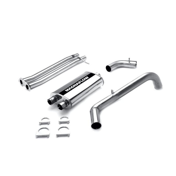 These MagnaFlow performance exhaust systems are as rugged and reliable as the vehicle that you drive. These exhaust kits feature OEM-style barbed hangers for easy installation, mandrel bends to prevent exhaust flow restrictions, and MagnaFlow's legendary straight-through, wide-open, stainless steel muffler to provide a smooth, deep tone outside of the vehicle. All MagnaFlow exhaust systems are factory-checked for proper fitment and dyno-tested to verify performance gains. These kits include all necessary installation hardware and some include a polished stainless steel exhaust tip.
