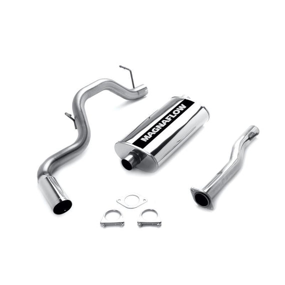These MagnaFlow performance exhaust systems are as rugged and reliable as the vehicle that you drive. These exhaust kits feature OEM-style barbed hangers for easy installation, mandrel bends to prevent exhaust flow restrictions, and MagnaFlow's legendary straight-through, wide-open, stainless steel muffler to provide a smooth, deep tone outside of the vehicle. All MagnaFlow exhaust systems are factory-checked for proper fitment and dyno-tested to verify performance gains. These kits include all necessary installation hardware and some include a polished stainless steel exhaust tip.