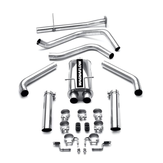 These MagnaFlow performance exhaust systems are as rugged and reliable as the vehicle that you drive. These exhaust kits feature OEM-style barbed hangers for easy installation, mandrel bends to prevent exhaust flow restrictions, and MagnaFlow's legendary straight-through, wide-open, stainless steel muffler to provide a smooth, deep tone outside of the vehicle. All MagnaFlow exhaust systems are factory-checked for proper fitment and dyno-tested to verify performance gains. These kits include all necessary installation hardware and some include a polished stainless steel exhaust tip.