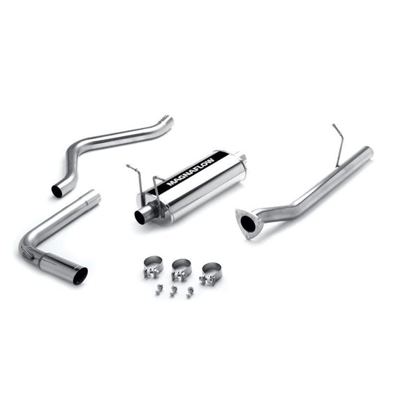 These MagnaFlow performance exhaust systems are as rugged and reliable as the vehicle that you drive. These exhaust kits feature OEM-style barbed hangers for easy installation, mandrel bends to prevent exhaust flow restrictions, and MagnaFlow's legendary straight-through, wide-open, stainless steel muffler to provide a smooth, deep tone outside of the vehicle. All MagnaFlow exhaust systems are factory-checked for proper fitment and dyno-tested to verify performance gains. These kits include all necessary installation hardware and some include a polished stainless steel exhaust tip.