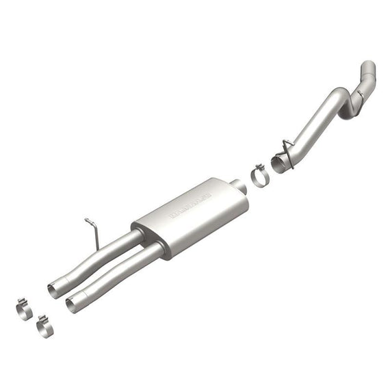 These MagnaFlow performance exhaust systems are as rugged and reliable as the vehicle that you drive. These exhaust kits feature OEM-style barbed hangers for easy installation, mandrel bends to prevent exhaust flow restrictions, and MagnaFlow's legendary straight-through, wide-open, stainless steel muffler to provide a smooth, deep tone outside of the vehicle. All MagnaFlow exhaust systems are factory-checked for proper fitment and dyno-tested to verify performance gains. These kits include all necessary installation hardware and some include a polished stainless steel exhaust tip.