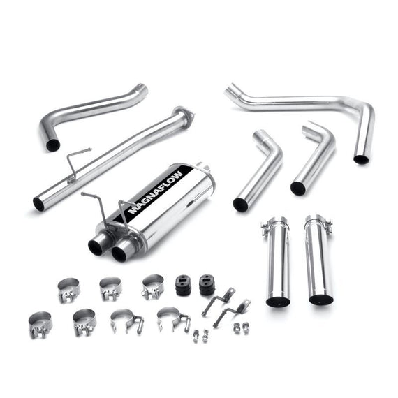 These MagnaFlow performance exhaust systems are as rugged and reliable as the vehicle that you drive. These exhaust kits feature OEM-style barbed hangers for easy installation, mandrel bends to prevent exhaust flow restrictions, and MagnaFlow's legendary straight-through, wide-open, stainless steel muffler to provide a smooth, deep tone outside of the vehicle. All MagnaFlow exhaust systems are factory-checked for proper fitment and dyno-tested to verify performance gains. These kits include all necessary installation hardware and some include a polished stainless steel exhaust tip.