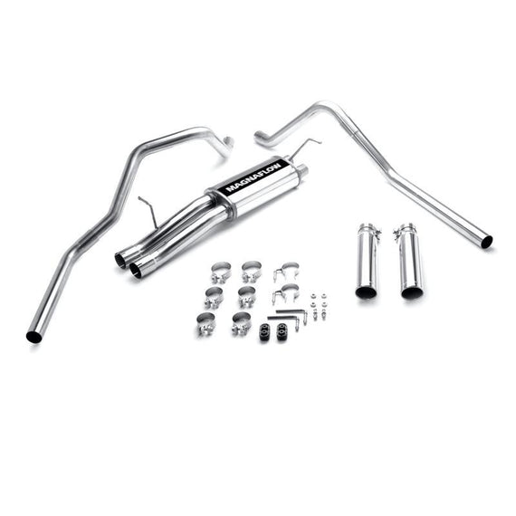 These MagnaFlow performance exhaust systems are as rugged and reliable as the vehicle that you drive. These exhaust kits feature OEM-style barbed hangers for easy installation, mandrel bends to prevent exhaust flow restrictions, and MagnaFlow's legendary straight-through, wide-open, stainless steel muffler to provide a smooth, deep tone outside of the vehicle. All MagnaFlow exhaust systems are factory-checked for proper fitment and dyno-tested to verify performance gains. These kits include all necessary installation hardware and some include a polished stainless steel exhaust tip.