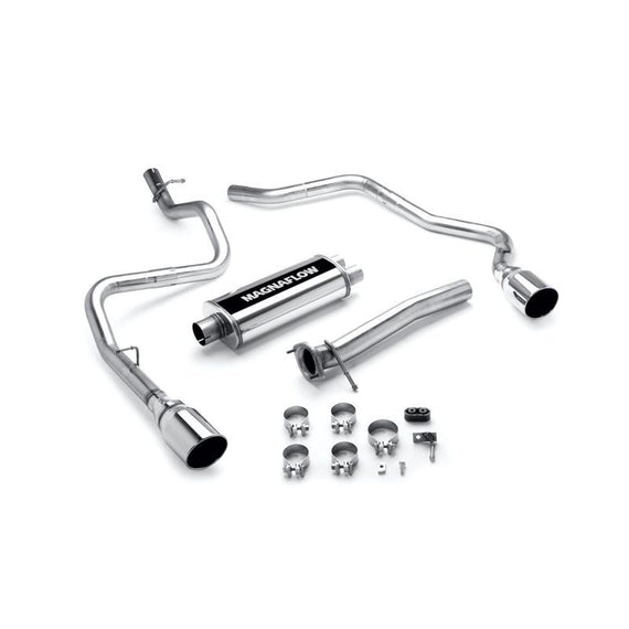 These MagnaFlow performance exhaust systems are as rugged and reliable as the vehicle that you drive. These exhaust kits feature OEM-style barbed hangers for easy installation, mandrel bends to prevent exhaust flow restrictions, and MagnaFlow's legendary straight-through, wide-open, stainless steel muffler to provide a smooth, deep tone outside of the vehicle. All MagnaFlow exhaust systems are factory-checked for proper fitment and dyno-tested to verify performance gains. These kits include all necessary installation hardware and some include a polished stainless steel exhaust tip.