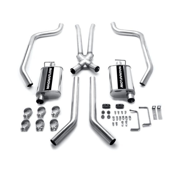 These MagnaFlow performance exhaust systems are as rugged and reliable as the vehicle that you drive. These exhaust kits feature OEM-style barbed hangers for easy installation, mandrel bends to prevent exhaust flow restrictions, and MagnaFlow's legendary straight-through, wide-open, stainless steel muffler to provide a smooth, deep tone outside of the vehicle. All MagnaFlow exhaust systems are factory-checked for proper fitment and dyno-tested to verify performance gains. These kits include all necessary installation hardware and some include a polished stainless steel exhaust tip.