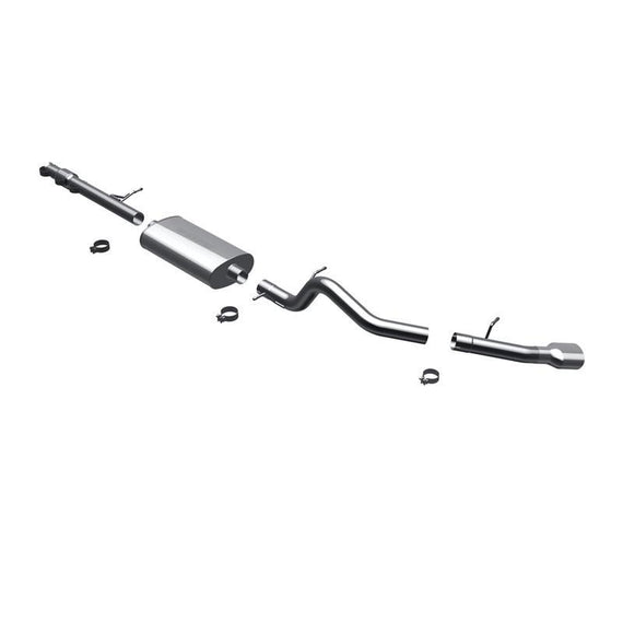 These MagnaFlow performance exhaust systems are as rugged and reliable as the vehicle that you drive. These exhaust kits feature OEM-style barbed hangers for easy installation, mandrel bends to prevent exhaust flow restrictions, and MagnaFlow's legendary straight-through, wide-open, stainless steel muffler to provide a smooth, deep tone outside of the vehicle. All MagnaFlow exhaust systems are factory-checked for proper fitment and dyno-tested to verify performance gains. These kits include all necessary installation hardware and some include a polished stainless steel exhaust tip.