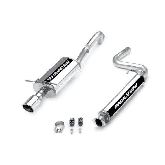 These MagnaFlow performance exhaust systems are as rugged and reliable as the vehicle that you drive. These exhaust kits feature OEM-style barbed hangers for easy installation, mandrel bends to prevent exhaust flow restrictions, and MagnaFlow's legendary straight-through, wide-open, stainless steel muffler to provide a smooth, deep tone outside of the vehicle. All MagnaFlow exhaust systems are factory-checked for proper fitment and dyno-tested to verify performance gains. These kits include all necessary installation hardware and some include a polished stainless steel exhaust tip.