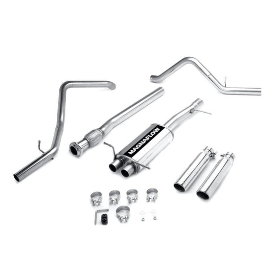 These MagnaFlow performance exhaust systems are as rugged and reliable as the vehicle that you drive. These exhaust kits feature OEM-style barbed hangers for easy installation, mandrel bends to prevent exhaust flow restrictions, and MagnaFlow's legendary straight-through, wide-open, stainless steel muffler to provide a smooth, deep tone outside of the vehicle. All MagnaFlow exhaust systems are factory-checked for proper fitment and dyno-tested to verify performance gains. These kits include all necessary installation hardware and some include a polished stainless steel exhaust tip.