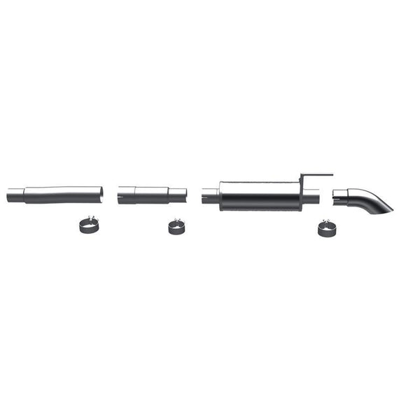 MagnaFlow Off-Road Pro series systems turn down before the axle design. The turndown provides an aggressive exhaust note and allows for usage on vehicles with highly modified suspension systems. The MagnaFlow Off-Road Pro series turndown systems provide the versatility to accommodate nearly every configuration, including lifted, lowered, air bagged, and long travel. Additionally, they are engineered for maximum power and minimal weight. These systems also eliminate the need for custom fabrication with true bolt-on fitment. Increase performance and turns heads with MagnaFlow Off-Road Pro series turndown systems.