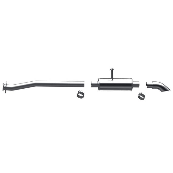 MagnaFlow Off-Road Pro series systems turn down before the axle design. The turndown provides an aggressive exhaust note and allows for usage on vehicles with highly modified suspension systems. The MagnaFlow Off-Road Pro series turndown systems provide the versatility to accommodate nearly every configuration, including lifted, lowered, air bagged, and long travel. Additionally, they are engineered for maximum power and minimal weight. These systems also eliminate the need for custom fabrication with true bolt-on fitment. Increase performance and turns heads with MagnaFlow Off-Road Pro series turndown systems.