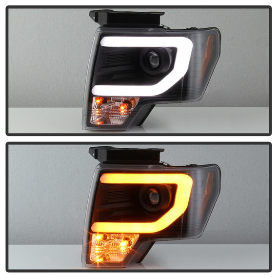 Spyder 09-14 Ford F-150 Projector Headlights - Halogen Model Light Bar - Blk PRO-YD-FF15009-SBLB-BK